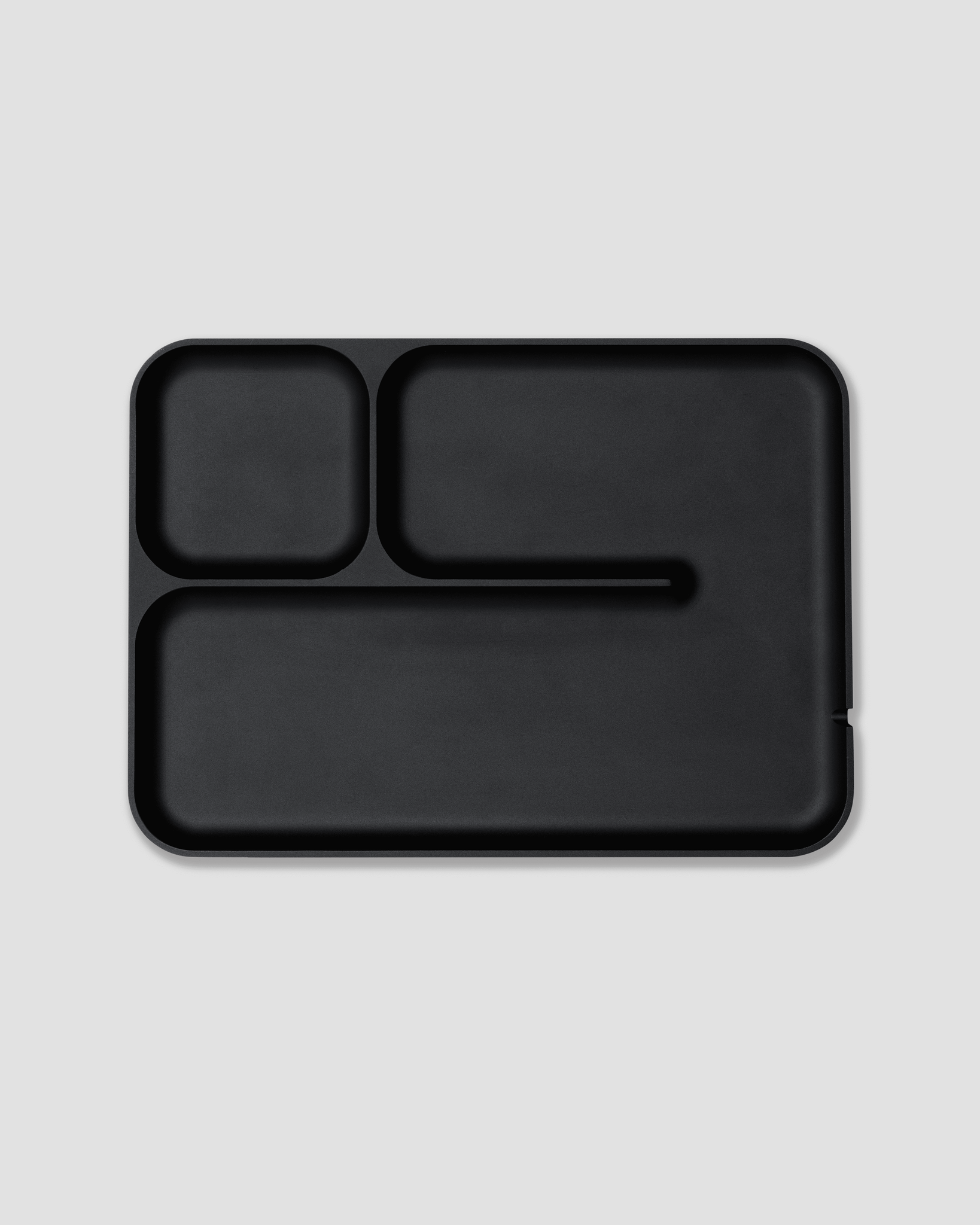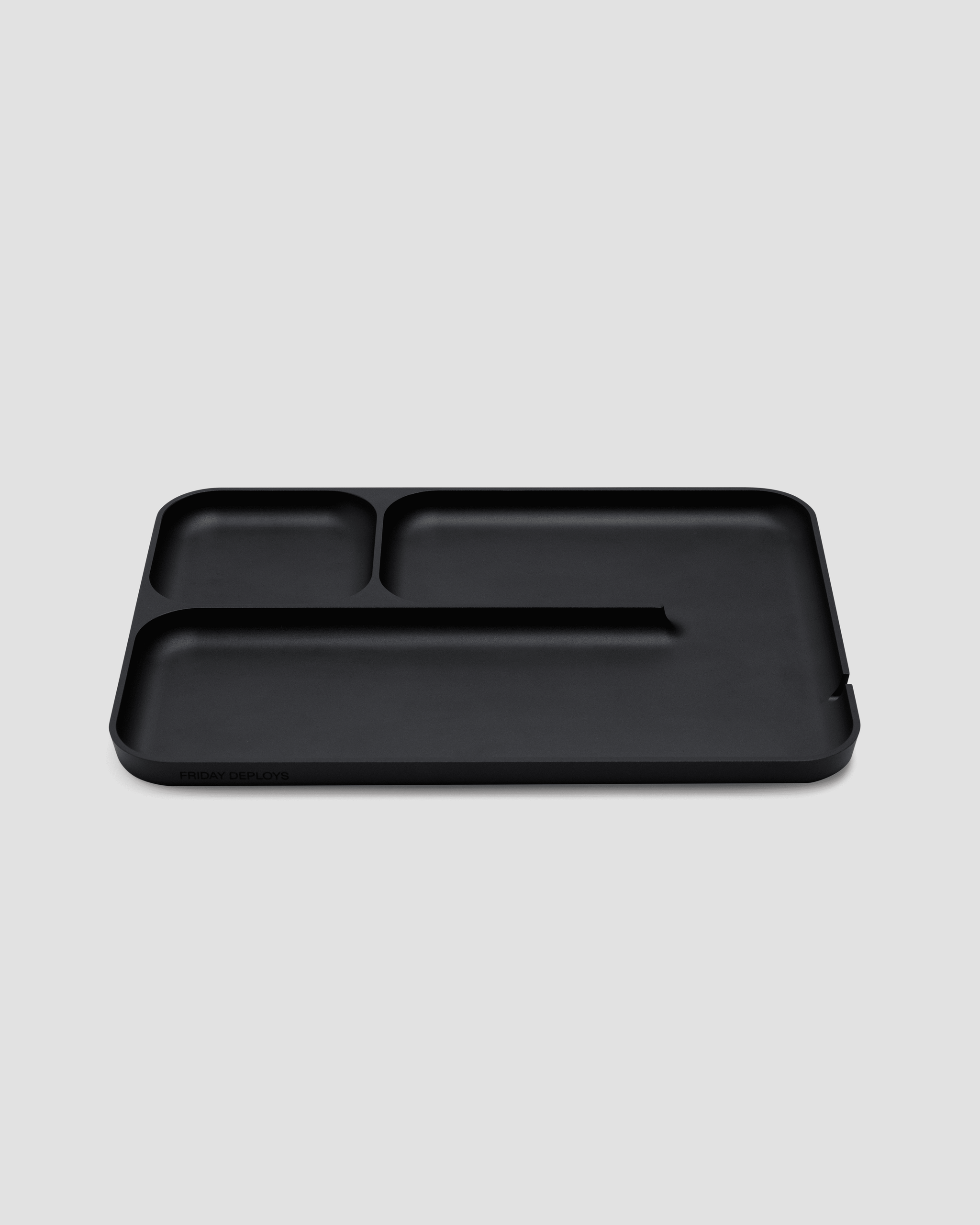 Inspired by the nostalgia of school cafeterias, our valet tray is milled from solid anodized aluminum with a matte black finish and built to organize and elevate your workspace, entryway, or nightstand.